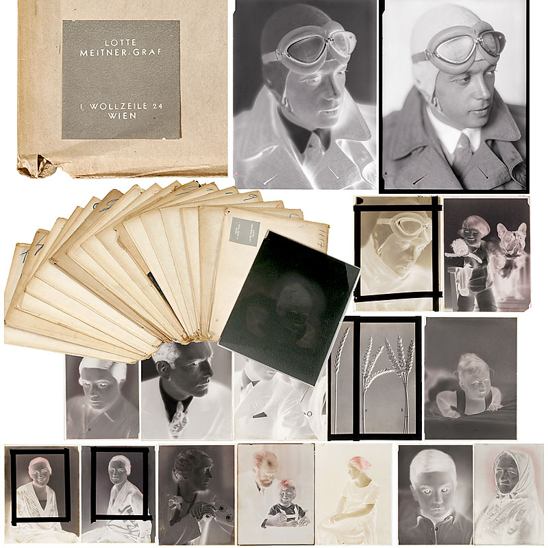 摄影师 Lotte Meitner-Graf(Glider Pilot Pioneer Robert Kronfeld), I, Wollzeile 24, 维也纳. 16张底片, 18 x 24 cm, 部分彩色. 2张 Robert Kronfeld 的肖像底片, 1904–1948, 以及其他人的肖像照片