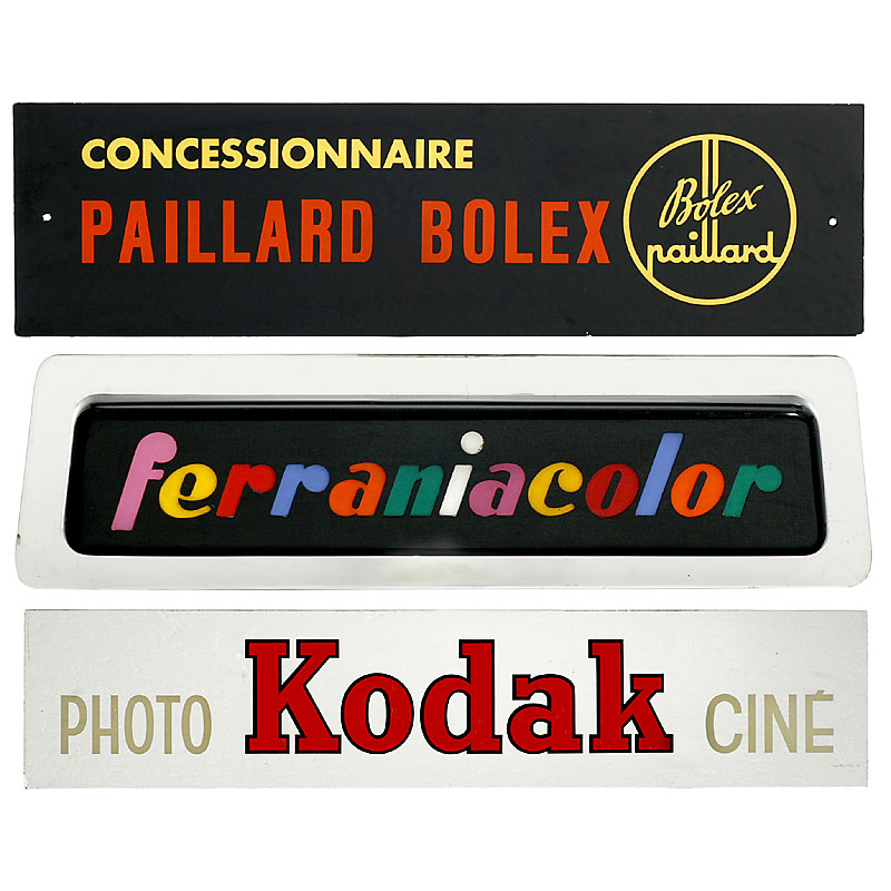 3)广告牌“Paillard Bolex”, 玻璃制作, 尺寸: 50 x 14 cm