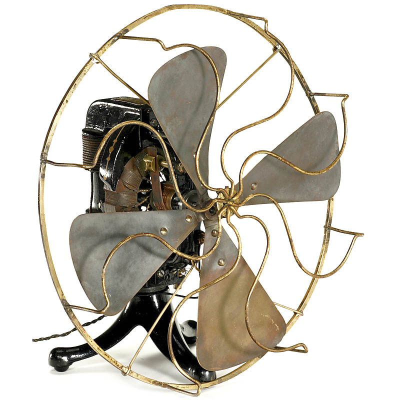 Very early electric fan motor by the ingenious American inventor, with brass blades and cage (replaced). Serial number 6763. – Runs perfectly with a 1,5 to 4,5-V battery. – Very important historical invention and collector's item! – A real museum piece!