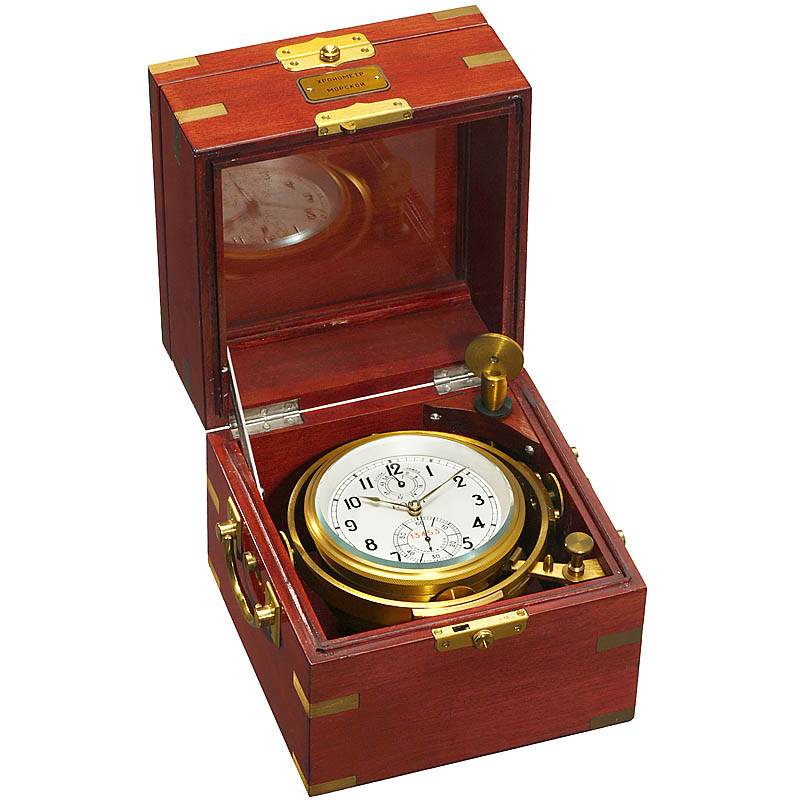 Manufacturer: Polet, USSR, serial no. 13453, three-tier mahogany case with brass fittings, in outer mahogany case, with 2nd dial and up-and-down dial calibrated for 56 hours. – Running.