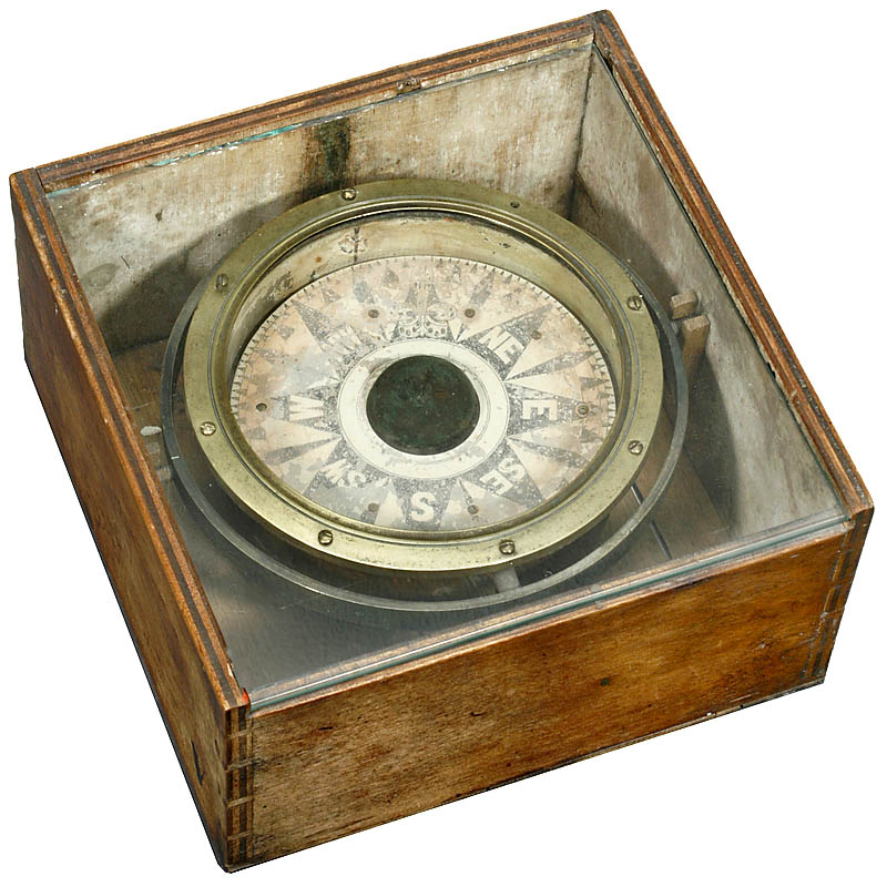 Unmarked, gimbal mounted, brass, O 9 in., working.