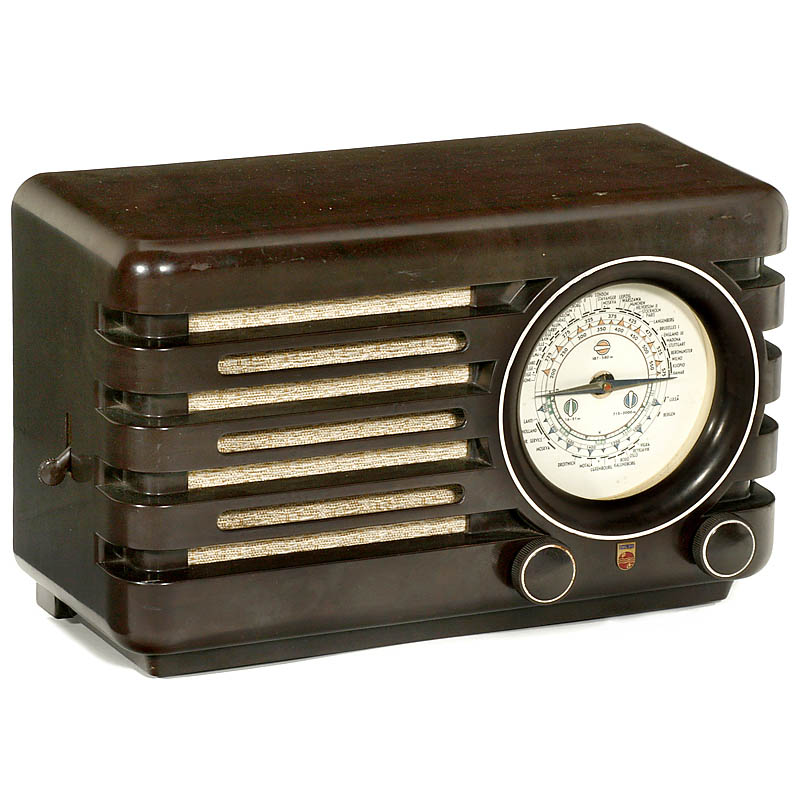 2) Loudspeaker "Elion", bakelite case. – And: 3) Radio receiver "Philips" BX 373, 3 wave ranges.