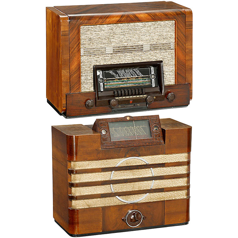 2) Type 796, 8-valve receiver, magic eye, station keys, all-wave ranges, without rear panel, cloth renewed.