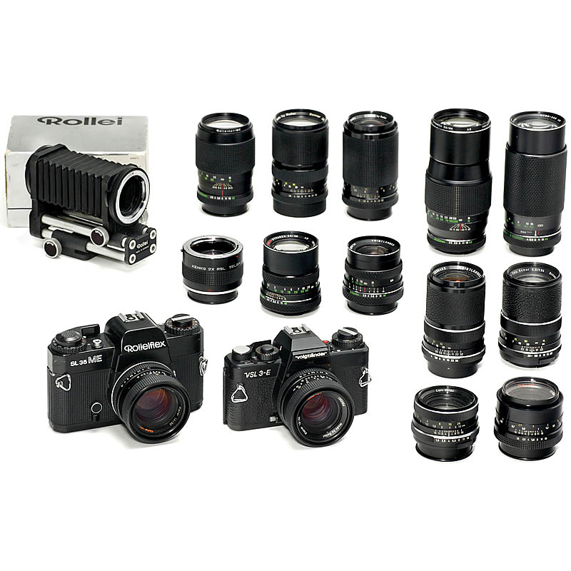 拍品描述:Color-Skoparex 2,8/35, 2 x Planar 1,8/50mm, Color-Dynarex 2,8/105 mm, Rollei SL-Tele Xenar 3,5/135 mm, Rolleinar 2,8/135 mm, Tele-Tessar 4/135 mm, Sonnar 2,8/135 mm, Color-Dynarex 4/155 mm, Color-Dynarex 3,5/200 mm, Vario-Dynar 4/80–200 mm.