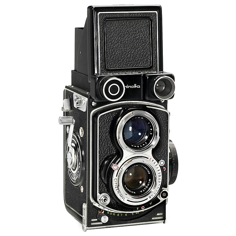 Minolta, Japan. TLR 6 x 6 with Rokkor 3.5/75 mm, Citizen-MVL shutter, shutter stuck, CdS light meter untested, with case.